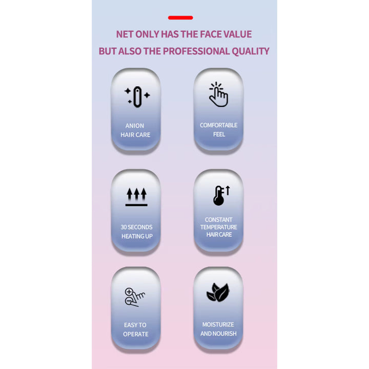 The high-concentration hair care anion technology gently nourishes your hair as the temperature rises, ensuring a smooth and glossy finish with every use.